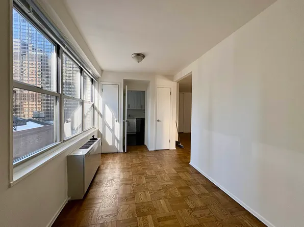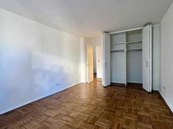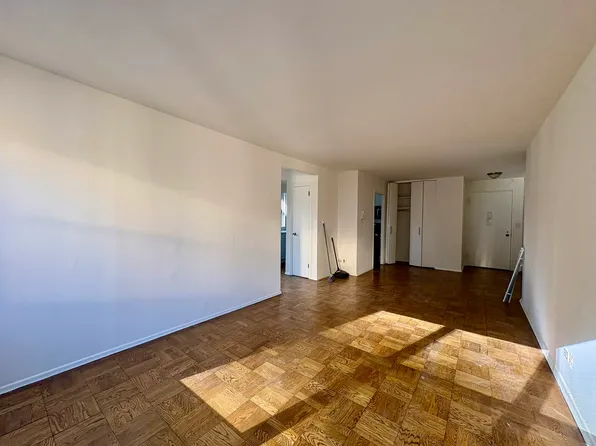 This newly renovated one-bedroom apartment in Columbus Circle is a must-see! The west facing 3G unit boasts custom closet space, a fully renovated kitchen and bathroom, and double pane windows. The bedroom features a spacious king-size bed and HVAC unit, while the living area easily fits a sectional sofa, dining table, and coffee table.