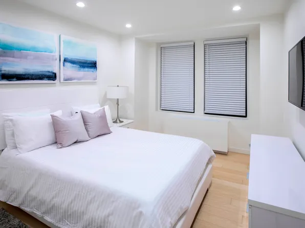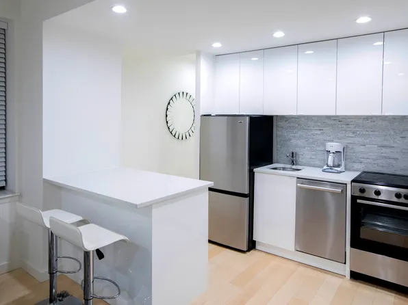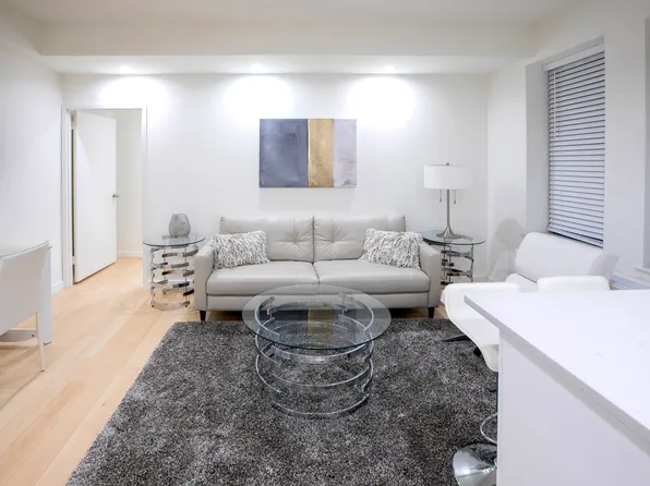 This newly renovated one-bedroom apartment in Columbus Circle is a must-see! The west-facing 6H unit boasts custom closet space, a fully renovated kitchen and bathroom, and double pane windows. The bedroom features a spacious queen-size bed and HVAC unit. while the living area easily fits a sectional sofa, dining table, and coffee table.