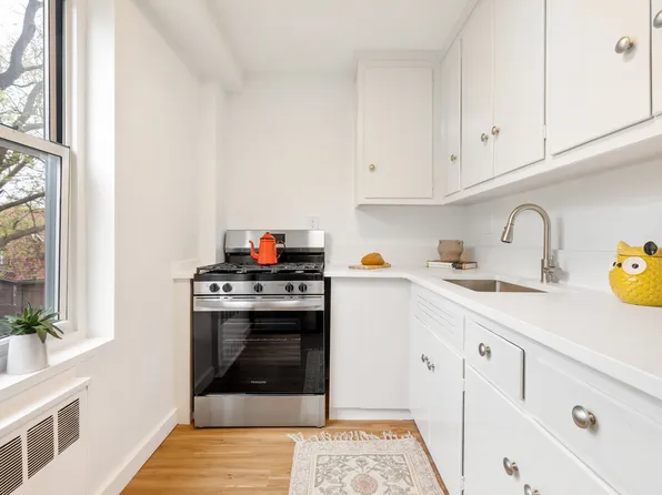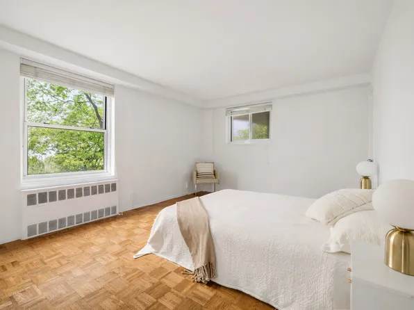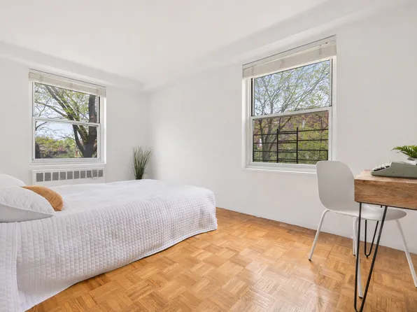 Seize this rare opportunity to purchase this renovated and cleverly reconfigured Junior 4 two bedroom, offering ample natural light and quality finishes. With exposures to the south, west, and east, this sprawling home offers hardwood floors, a custom open concept kitchen with bar seating, two spacious double exposure bedrooms, six spacious closets, and more.