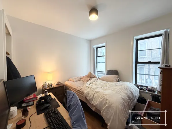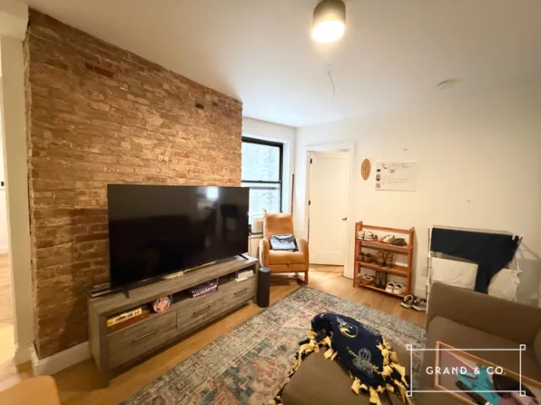 Upon entering, you are greeted with a spacious living room with exposed brick. It can easily accommodate your three-seater or sectional sofa, coffee table, and bookshelves. Both bedrooms easily accommodate king beds, desks, dressers, and nightstands, and have closets and windows.