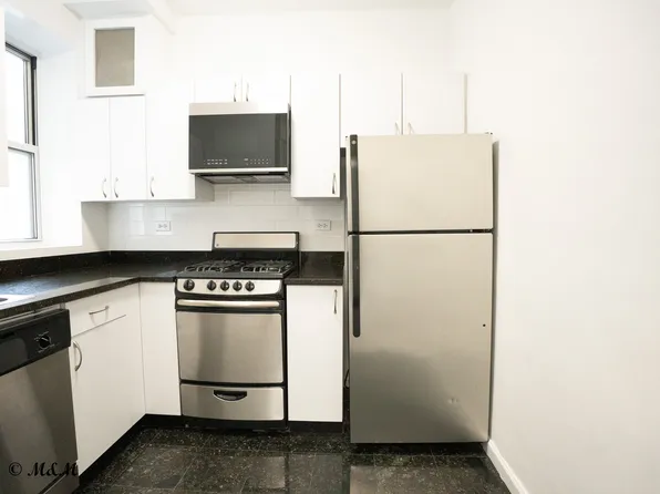 The open kitchen has beautiful s-steel appliances, m/w, d/w, and large fridge, abundant cabinet space, high ceilings, hardwood, decorative fireplace in the living room, all queen size bedrooms, one has a walk-in closet, all have overhead storage, nicely tiled bathroom with tub and shower, and good, natural light throughout.