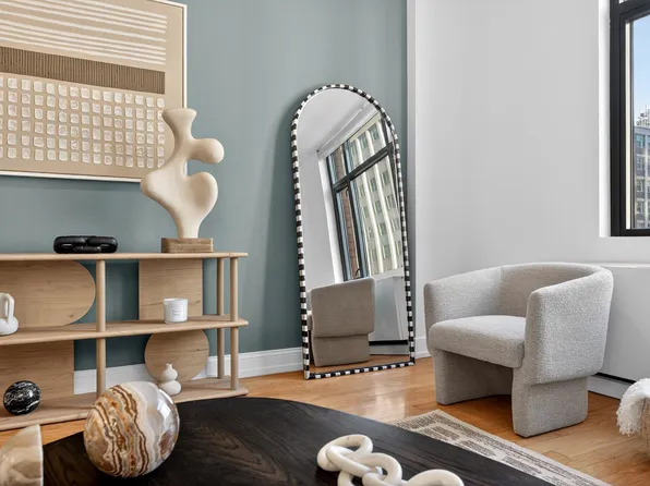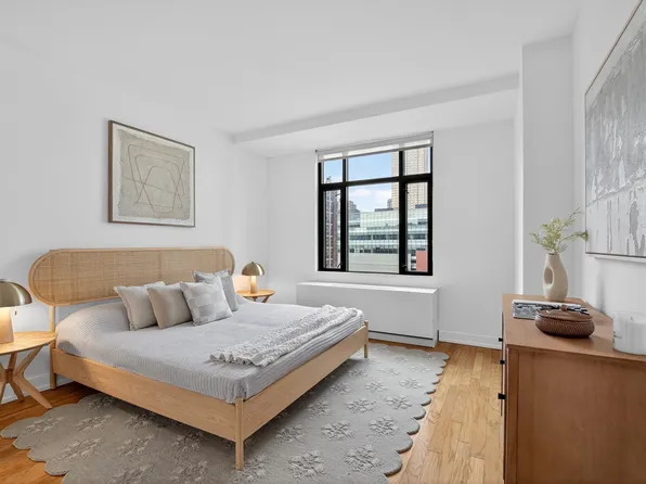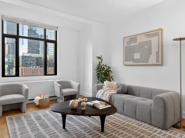 Residence 3007 at 99 Hudson boasts a front-load washer and dryer by Bosch, floor-to-ceiling windows, and an open plan design with premium finishes and fixtures. The kitchen features custom white lacquer cabinetry imported from Pordenone, Italy, stainless steel fixtures by Kohler, a vented hood by Italian manufacturer XO, and premium-grade appliances by Bosch.