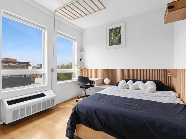 New to Market! Imagine a sunny and quiet oasis at the crossroads of Williamsburg & Greenpoint, in a completely gut-renovated and thoughtfully re-imagined one bedroom home. Facing North & East, residence #401 gets spectacular sky and light all day long with open epic views and lush greenery out of large windows.
