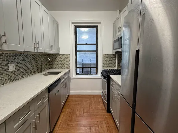 Brand-new luxury apartment featuring hardwood floors, a designer kitchen with marble countertops, stainless steel appliances, dishwasher, high ceilings, great closet space, and abundant natural light. Queen-size bedrooms, double-pane windows, and a modern bath with deep soaking tub.
