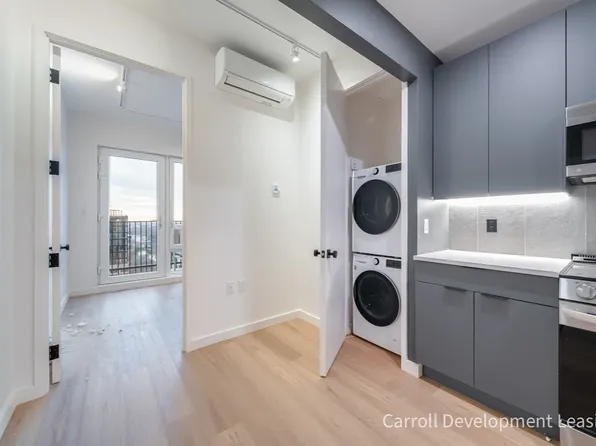 Beautiful new building with laundry and rooftop.