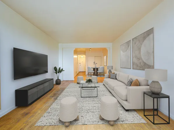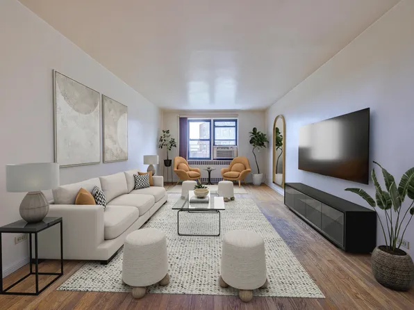 Welcome to this bright and spacious 2-bedroom, 1-bath corner (JR4) unit on the border of Forest Hills and Rego Park, just one block from the 67th Ave M/R subway station. Boasting eight windows, this sun-drenched home offers sweeping, unobstructed views of the Manhattan skyline, as well as the Unisphere and Citi Field.