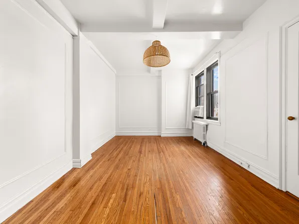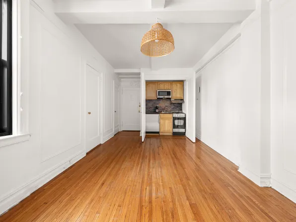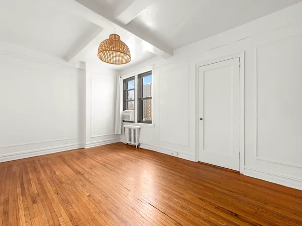 Beautiful studio located in an elegant doorman building in the heart of Clinton, surrounded by Carnegie Hall, Lincoln Center, the Time Warner Center, the Theater District, Central Park and Hudson River Park.The high floor south facing apartment offers great light and boasts classic prewar details such as moldings, hardwood floor and beamed ceiling. Spacious windowed bathroom, renovated kitchen and two large closets.