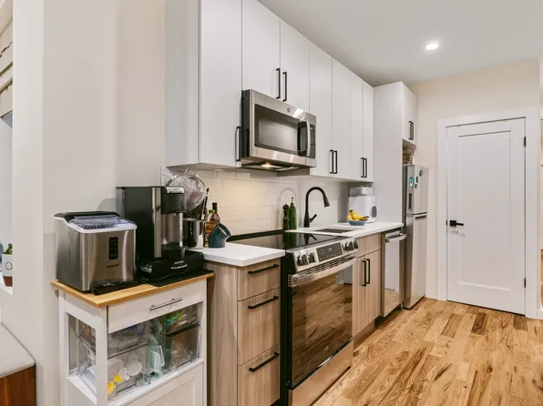- Large kitchen with generous counter space, with full-sized stainless steel appliances and gas stove