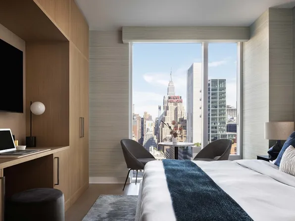 Step within the threshold of your luxurious ARO Alcove Studio into an inviting sanctuary of contemporary design in what is currently the best rental building in NYC. Oakwood flooring, high ceilings, and premium finishes are bathed in natural light streaming from floor to ceiling windows. A thoughtfully laid out floorplan harmonizes your living and dining areas with kitchen, bathroom and closet space, making for stylish entertaining as well as relaxing functionality.