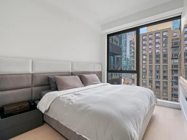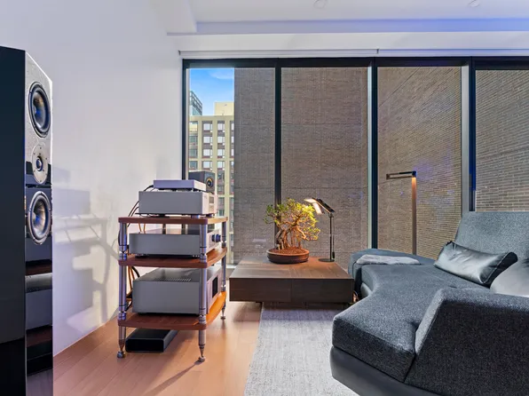 This thoughtfully designed apartment features an open layout, smart home technology, a private balcony, and ample storage space. With soaring 10-foot ceilings and large, double-exposure windows, the unit is filled with abundant natural light, creating a serene urban oasis.