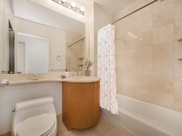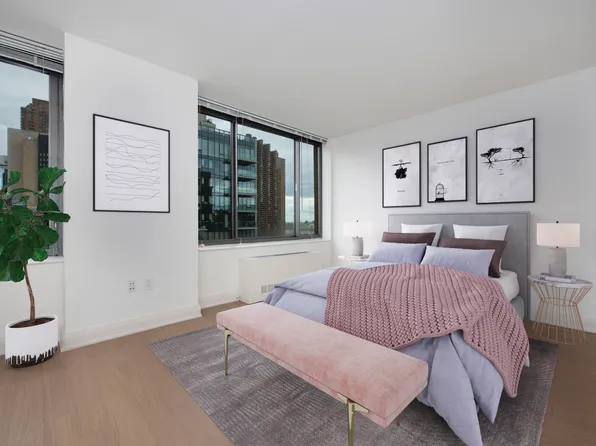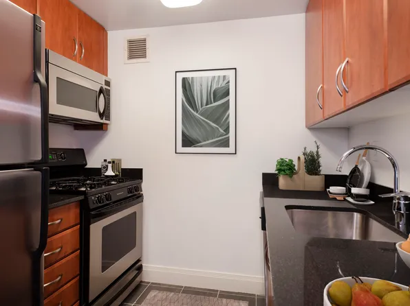Bright one bedroom with eastern views and lots of natural light. Features a pass-through kitchen with breakfast bar, stainless steel appliances, and generous closet space.