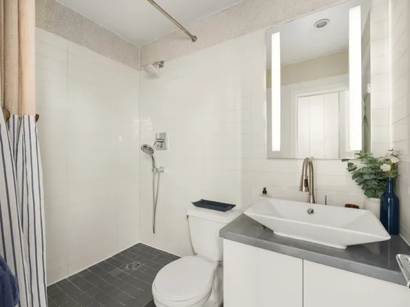 Dramatic and refined 1 bedroom / 2 full bath duplex loft, at the sought after Bleecker Court. Unit 333 is one of the largest one bedrooms in the building, and features an expansive living / dining space spanning 50 ft in length, magnificent arched industrial windows facing East, 18 ft ceilings, hardwood floors and an updated open kitchen with a breakfast bar.