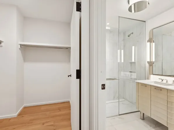 This corner one-bedroom, one-and-a-half-bath home has been fully reimagined with a new kitchen, elegant bathrooms, and thoughtful millwork throughout.