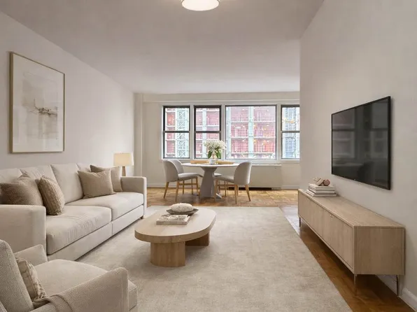 Bright and charming studio offering approximately 450 square feet of thoughtfully designed living space in the heart of Midtown Manhattan. Situated on a high floor, this home features abundant natural light and a well-proportioned layout.