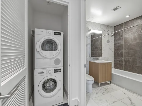 $1,000 Reduced Security Deposit for Qualified Applicants Large sun flooded one bedroom one bath apartment featuring a large closet in the bedroom, integrated panelized kitchen appliances, and in-unit Bosch washer/dryer.