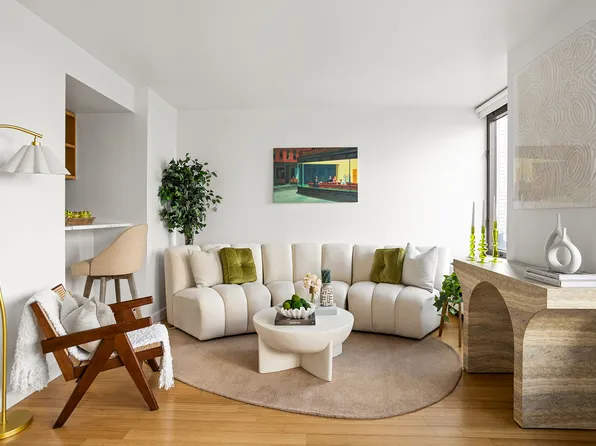 A perfect Pied a terre in the most convenient location! This sun filled studio alcove, conveniently located just a few blocks from Central Park, has everything you're looking for in the perfect condo. It features lovely wooden herringbone floors and a state-of-the-art brand-new kitchen with a convenient pass-thru window to the living area.