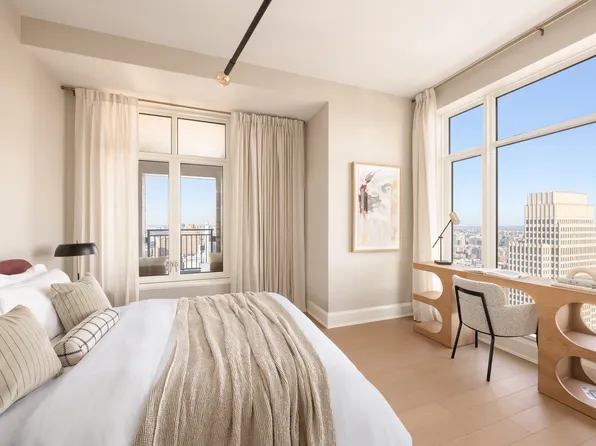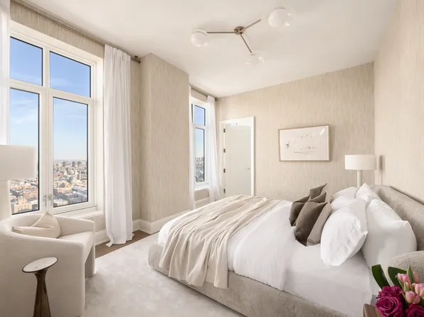 Residence 31C is a corner three-bedroom, two-bathroom home with powder room that offers sweeping northern and western views over the Hudson River, Riverside and Sakura Parks, and the iconic spire of Riverside Church.