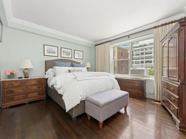 Welcome to a large west facing one bedroom with a private balcony perched high the top floor of The Connaught Tower. From the balcony, you have incredible views to the south of The Chrysler & Empire State Building. This apartment has three large closets with a king-sized primary bedroom. Heating and cooling operates by through-wall, units under the windows.