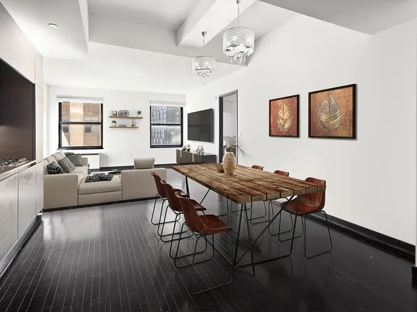 A triple-mint Fulton/Seaport condo boasting chic finishes and vibrant southern exposure, this beautiful 3-bedroom, 3-bathroom home offers luxurious Downtown living and a unique layout. Elegant dark hardwood floors run throughout 1,738 sq. ft. of pristine interior space.
