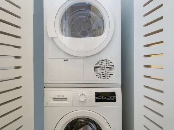 Beautiful studio, one-bathroom apartment featuring a walk-in closet, matte black and Calcutta finishes, custom tiled bathrooms, and in-unit washer/dryer.