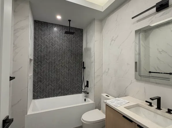 Featuring large closets, matte black and Calcutta finishes, custom tiled bathrooms, spacious closets and in-unit washer/dryer.