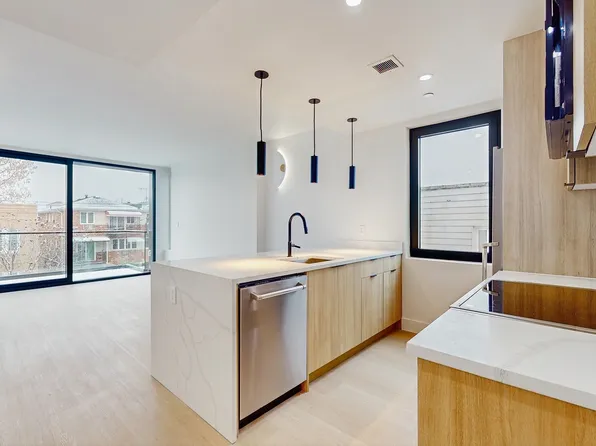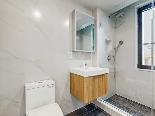 oversized windows, matte black and Calcutta finishes, custom tiled bathrooms, spacious closets and in-unit washer/dryer.