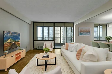 Embrace the allure of city living in this spacious one-bedroom co-op, offering captivating views of the Williamsburg Bridge and serene water vistas. Featuring original parquet floors throughout, a vast entertainment living room, and a charming eat-in kitchen with a dinette, this residence exudes comfort and coziness. Wake up to stunning bridge and water views from the bedroom and unwind in the full bathroom with windows.