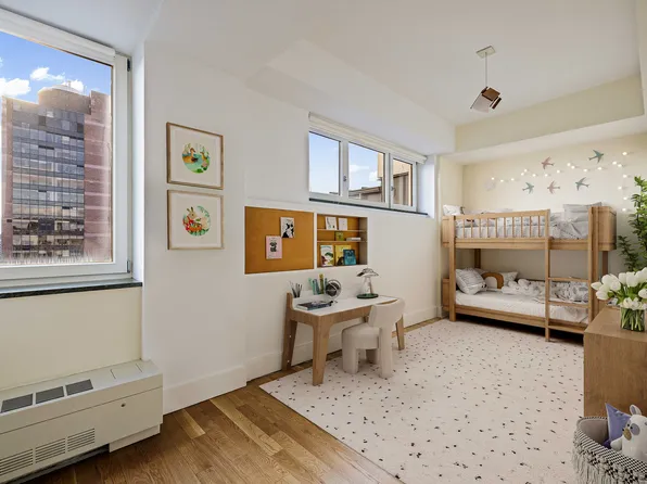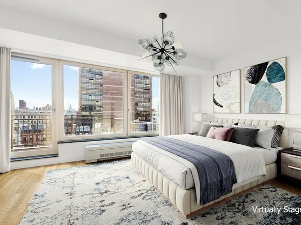 This immaculate south/east facing 7th floor two bedroom two bath boasts an expansive 15 x 22 living room space with giant floor to ceiling windows which allow for maximum light. The luxurious 16 x 10 open chefs kitchen is for kitchen lovers with tons of storage with a large south facing window which bring in the rays of sun and views of midtown and beyond.