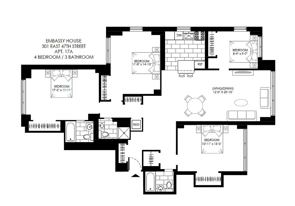 Embassy House is a 24-hour doorman building with expansive apartment layouts, abundant closet space, stunning kitchens with stainless steel appliances and granite countertops, a...