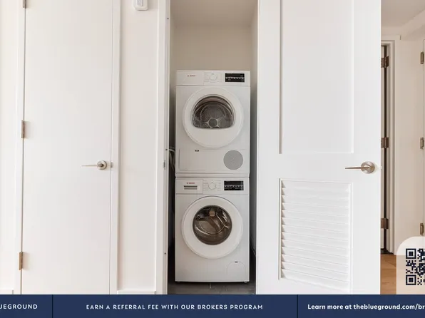 Spacious west-facing one-bedroom featuring unobstructed views of Manhattan, an in-home washer and dryer, and floor-to-ceiling windows that fill the home with natural light.