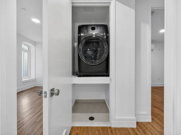 Enter the apartment through a foyer with a sitting bench, a large coat/storage closet and a second fully vented washer/dryer closet.