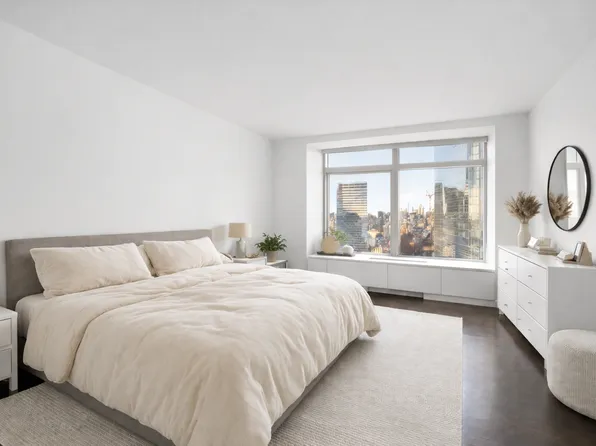 This spacious, light-flooded two bedroom, two bath gem features beautiful views of the water and New York City through oversized south-facing windows! This chic and beautiful apartment has high ceilings, a lovely and inviting aesthetic, and an efficient layout. The top-of-the line open kitchen features a Viking stove and microwave, SubZero refrigerator, Fisher Paykel dishwasher, ample cabinet and countertop space, and a garbage disposal.