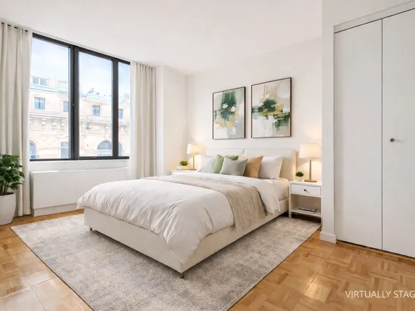 Available starting early JUNE, this spacious one-bedroom unit in a 24-hour full-service doorman building. This North facing apt features ample closet space, and through-wall HVAC units.