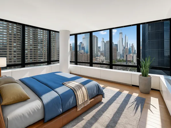 Welcome home to Hampton House's jewel in the sky, 29CD. This spacious three-bedroom condominium offers sweeping city views and bright, airy living. Thoughtfully designed, the home features custom California Closets throughout—including a generous walk-in closet in the primary bedroom—providing exceptional storage and organization. Two additional bedrooms offer flexible use for guests, work, or recreation, each with abundant closet space and stunning vistas.