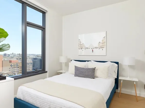 Bright 1 bedroom with open views across Livingston street. This apartment features an oversized u-shaped gourmet kitchen equipped with top-of the-line GE stainless steel appliances, a full-sized refrigerator, pristine quartz countertops, and an eating bar. Apartment also includes wide plank desert oak wood flooring throughout, good closet space and an in-unit Bosch washer/dryer.