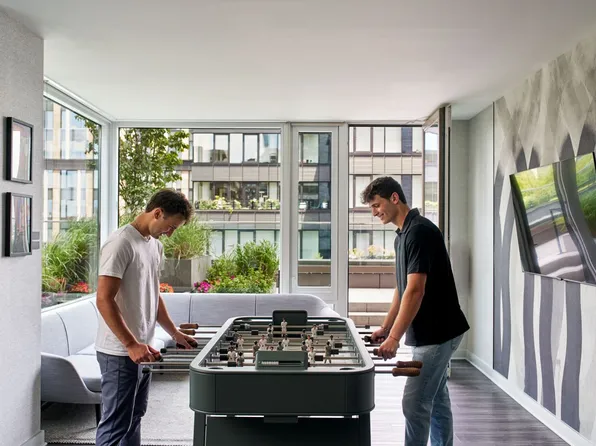 Condo quality finishes in this bright two bed, two bath apartment. With natural hardwood strip flooring, soaring ceilings and an open layout, this is where you want to come home. A full sized washer and dryer, top-of-the-line stainless steel appliances, including a dishwasher and microwave.