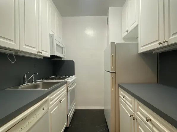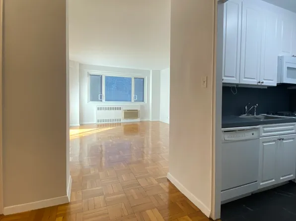 Large, open living room. Modern white kitchen with granite counter tops. White tile bathroom. Great closet space. Wall-through A/C units and noise-reducing north facing windows.