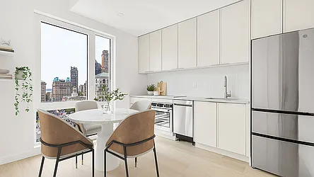 Each residence is thoughtfully appointed with high-end finishes, oversized windows, and sleek modern kitchens. Select units offer private balconies with sweeping skyline views.