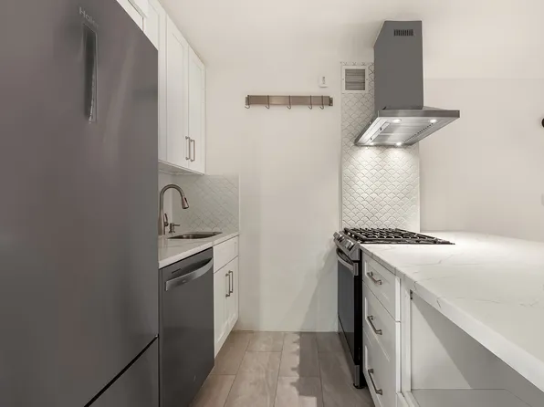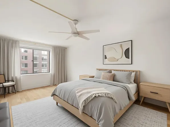 This renovated south facing 1BR/1BA residence features a generously proportioned living space with river views. The renovated galley kitchen includes stainless steel appliances and dishwasher. The stone countertops and cabinetry highlight a warm and neutral palette. The bathrooms feature Cararra marble floors and wall tiles. The spacious bedroom features large closets and southern exposure.