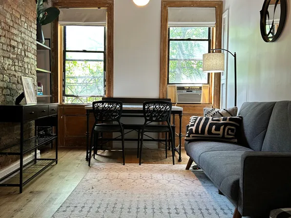 Apartment 1E is a converted two-bedroom home with a spacious open living/dining room, hardwood floors, a renovated bathroom and kitchen with stainless steel appliances, dishwasher, convection oven and a washer-dryer in the unit. One bedroom does not have a window, all bedrooms fit a queen size bed and a desk.