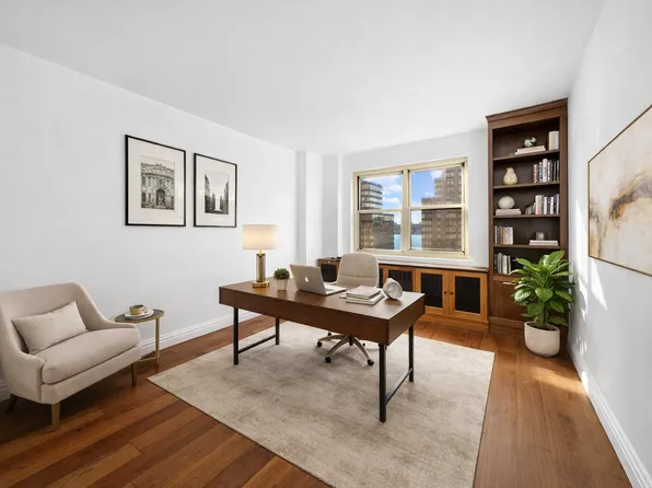 Residence 2E at 160 West End Avenue is a southwest-facing corner two-bedroom, two-bath home with a practical layout, strong natural light, and private outdoor space in the heart of Lincoln Towers.