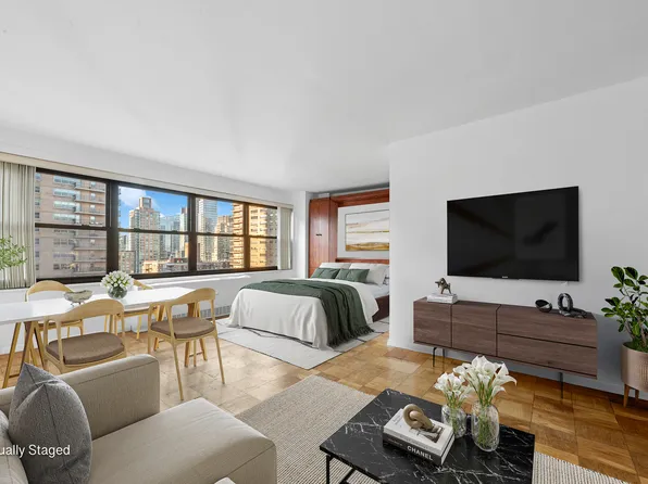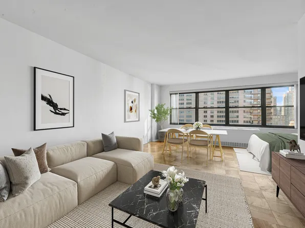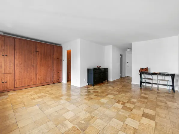 Apartment 3E at 205 West End Avenue is a spacious north-facing alcove studio, offering an exceptional opportunity to create your own personalized retreat in the heart of Lincoln Square. The thoughtfully designed layout features a separate sleeping alcove, a large living area, parquet tile floors throughout, through-the-wall A/C, and ample closet space—including a walk-in closet.