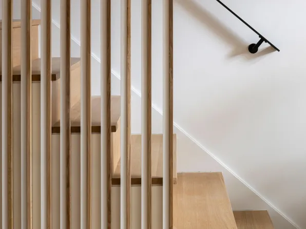 Upon entering the main level, the duplex reveals its impressive scale, complemented by European white oak flooring heightening its airy proportions.