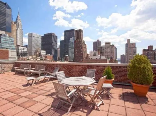 Charming, sunny, terraced one bedroom apartment with open south and west exposures for full city views in a full service pre-war co-op on a charming tree lined Murray Hill Street off of Park Avenue.