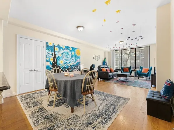 TOP FLOOR, CORNER UNIT in a brand new condo development with private balcony that has unobstructed views of Queens and Manhattan. Be the first to live in this 1 bedroom unit! This home has an open-concept kitchen, living room with floor to ceiling windows and lots of natural light. Video intercom doorbell system, Smart door lock, Residents-only gym, Laundry on each floor Close to trains, Buses, Costco, Target, Aldi, Queens Center Mall, and many more.