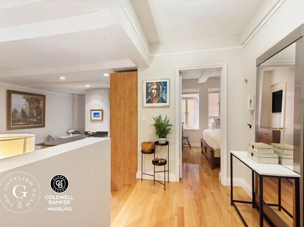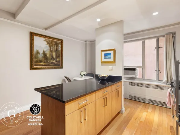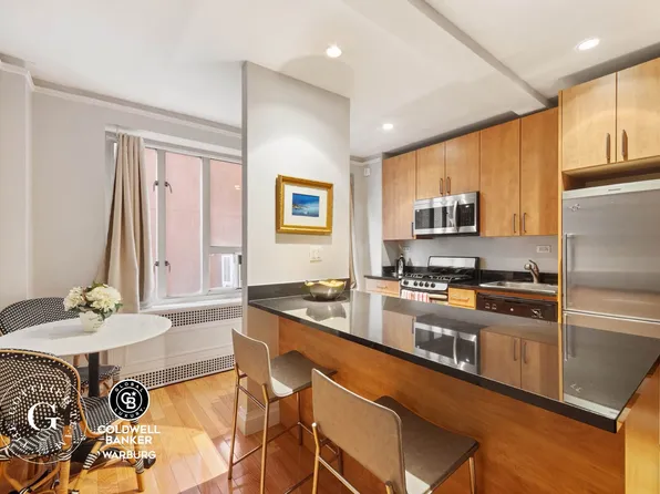 Just one block north of Madison Square Park, Apartment 10L at 66 Madison Ave is now available for purchase. This layout is unique for the building and offers a one bedroom plus home-office. The large U-shaped kitchen is fully equipped with dishwasher, oven, stove and refrigerator. It opens over bar seating to the living room.