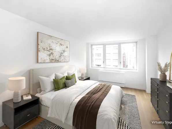 New luxury, One Bedroom apartment neighboring the iconic Bryant Park. The entry way foyer opens to a sun-drenched unit with floor to ceiling windows and close to ten-foot ceilings throughout. Modern kitchens have custom cabinetry, Northern white oak flooring, limestone backsplashes, Caesarstone counter tops and state-of-the-art Bosch appliances with gas range cook top.