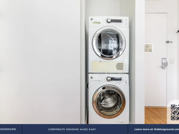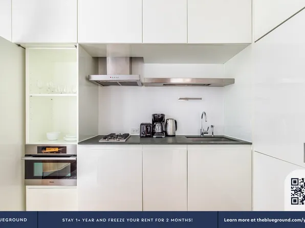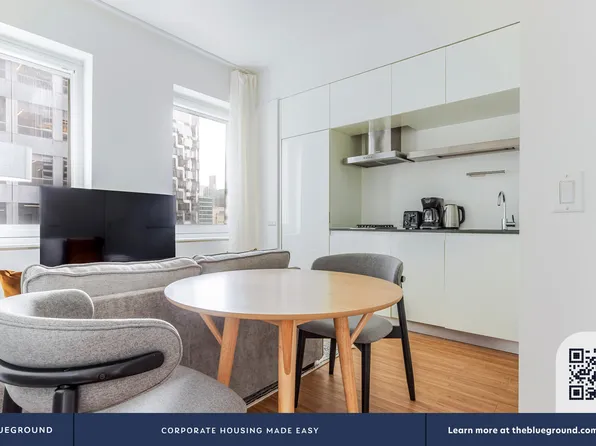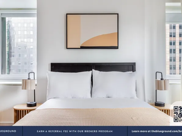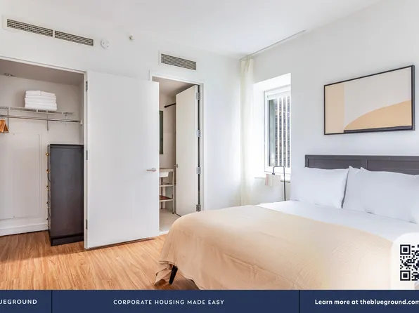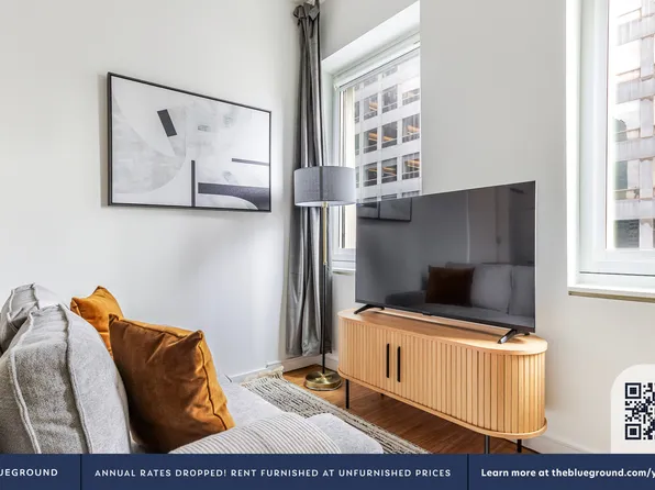 New luxury, One Bedroom apartment neighboring the iconic Bryant Park. The entry way foyer opens to a sun-drenched unit with floor to ceiling windows and close to ten-foot ceilings throughout. Modern kitchens have custom cabinetry, Northern white oak flooring, limestone backsplashes, Caesarstone counter tops and state-of-the-art Bosch appliances with gas range cook top.