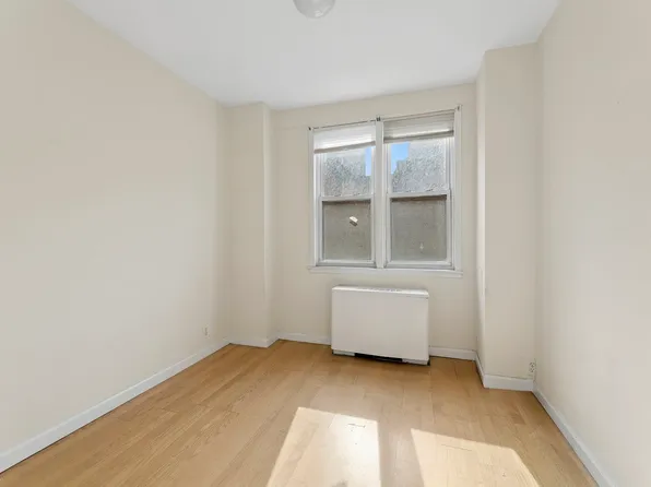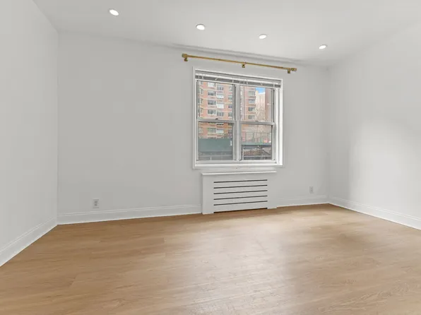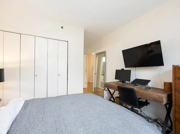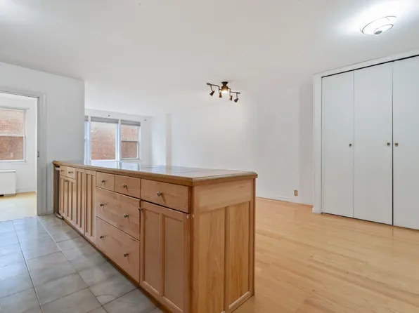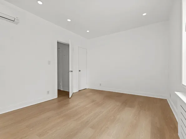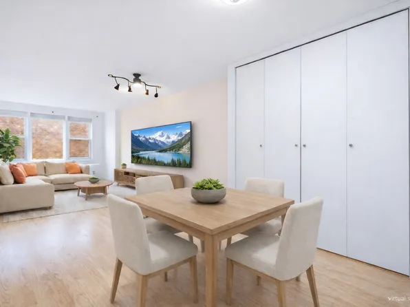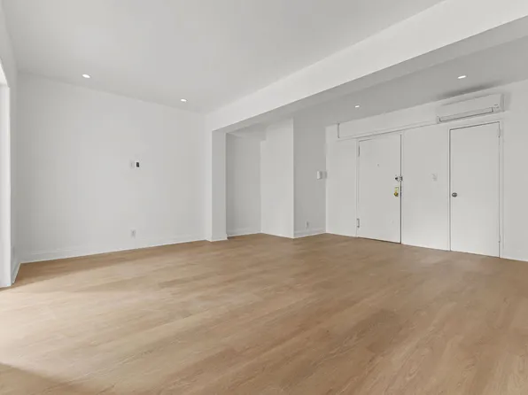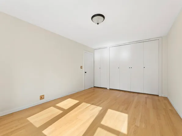 The apartment offers generous living and dining areas. The oversized primary bedroom accommodates a king-size bed and features two large closets.