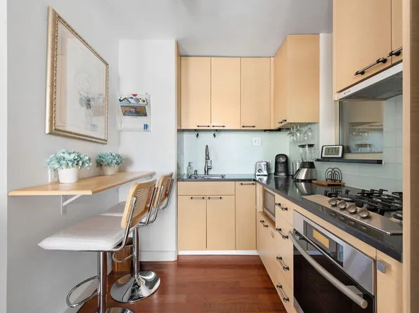 Bright one bedroom with eastern views and lots of natural light. Features a galley kitchen with stainless steel appliances, plank flooring, and ample closet space.